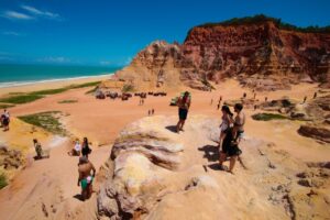 Se a maré estiver baixa (até 0.8m), é possível contratar na hora o famoso passeio de jangada até as piscinas naturais — um espetáculo que parece mentira.
